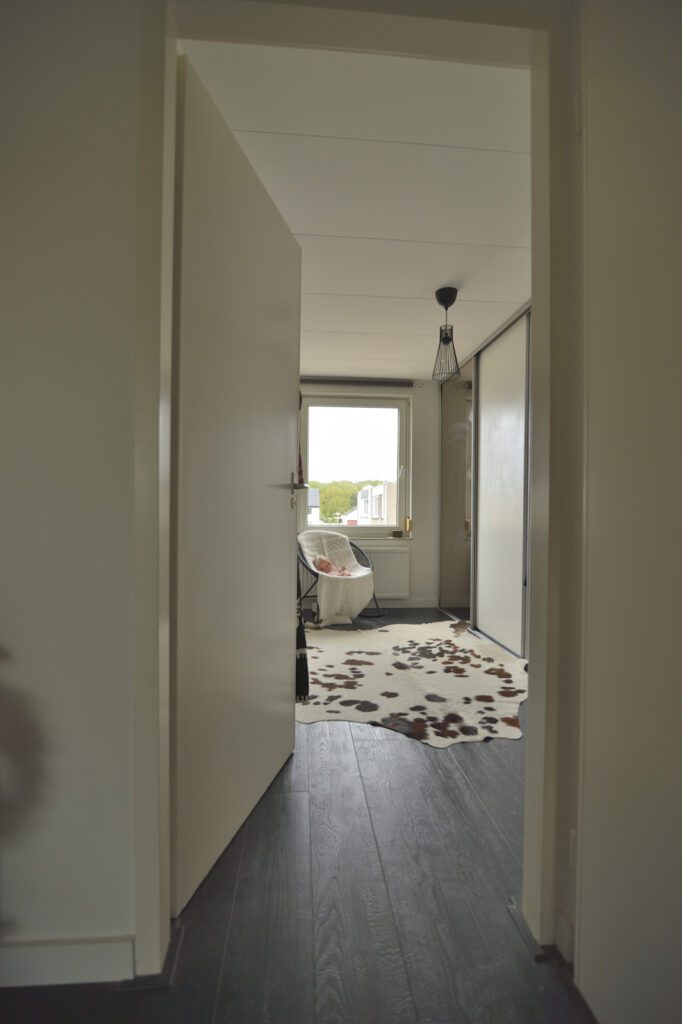 De overloop ligt centraal en heeft een vaste wandkast. De 3 (oorspronkelijk 4) slaapkamers en de badkamer zijn vanuit hier bereikbaar.